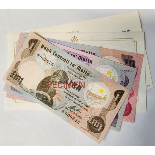 MALTA 1967 . ONE 1 - TEN 10 LIRA BANKNOTES . SPECIMEN