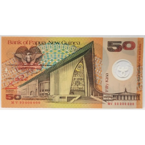 Papua New Guinea 1999 Fifty 50 Kina Banknote. Serial: MV99000000.