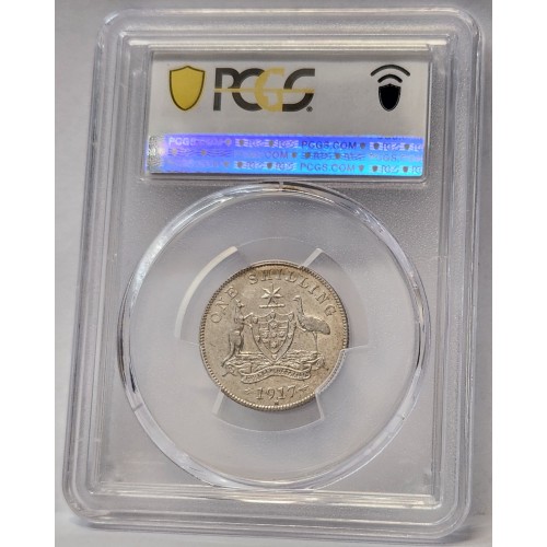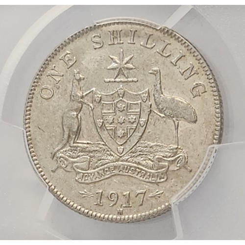 Australia 1917 M One 1 Shilling. PCGS AU53. Full Crown. 8 Pearls.
