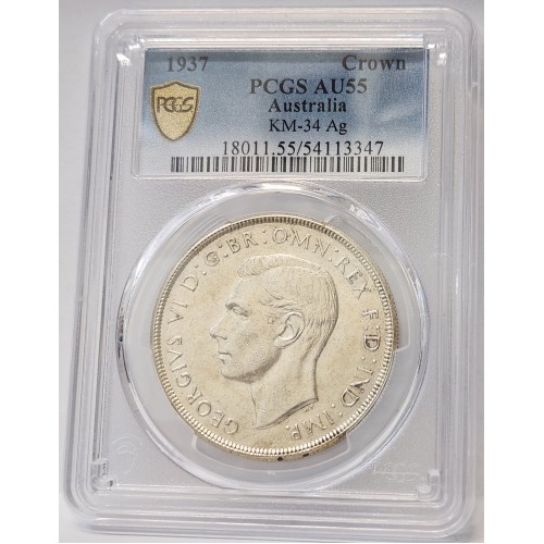 Australia 1937 Crown. PCGS AU55. Silver. Full Lustre. aUncirculated.