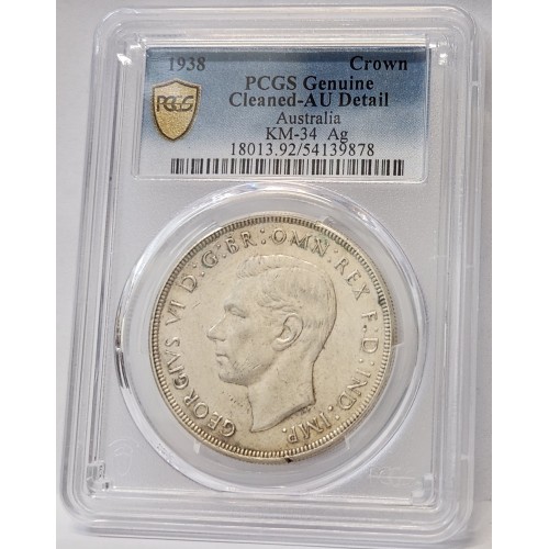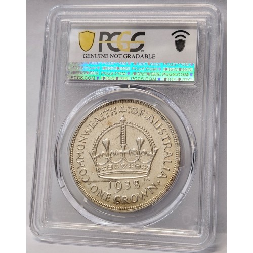 Australia 1938 Crown. PCGS Genuine. AU Detail. Cleaned. aUncirculated.