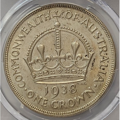 Australia 1938 Crown. PCGS AU58. Silver. Lots of Lustre. aUncirculated.