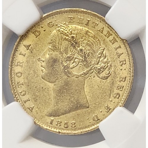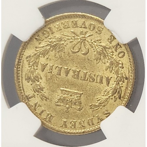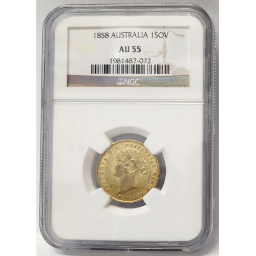 Australia 1858 One 1 Sovereign. Sydney. Gold. Super Rare Date. NGC AU55 or