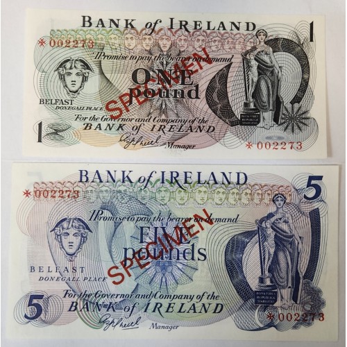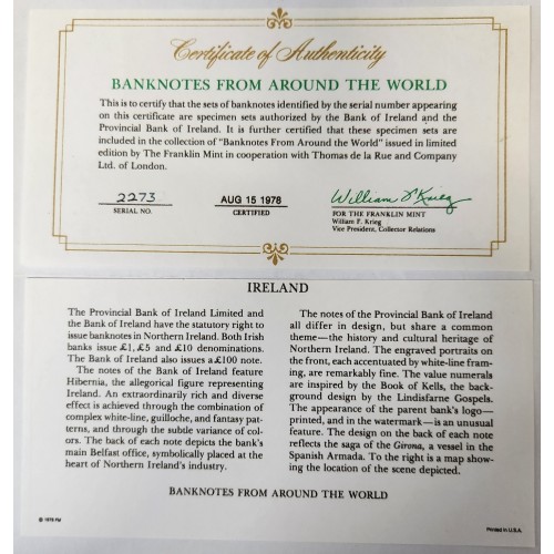 Ireland 1979 One 1, Five 5, Ten 10, One Hundred 100 Pounds Banknotes.
