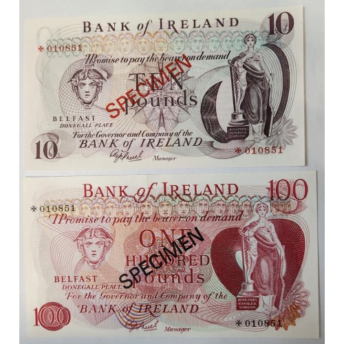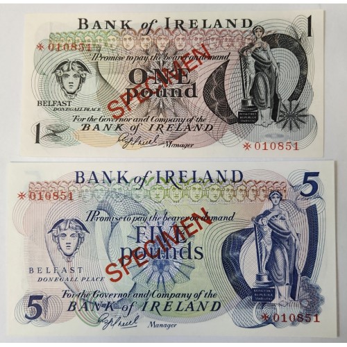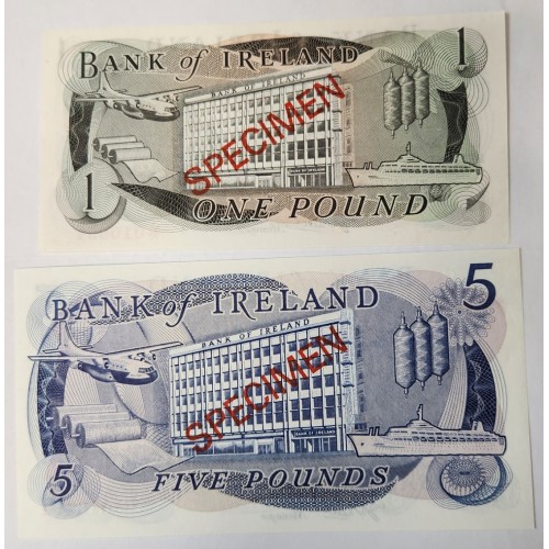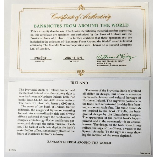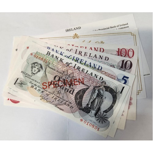 Ireland 1978 One 1, Five 5, Ten 10, One Hundred 100 Pounds Banknote.