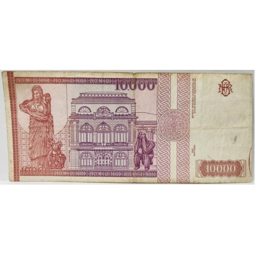 Romania 1994 Ten Thousand 10,000 Lei Banknote. Serial: F.0064 / 878828. Error.
