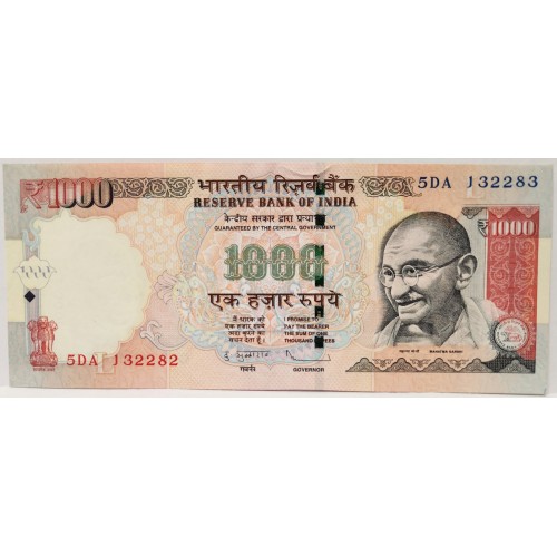 INDIA 2000 . ONE THOUSAND 1,000 RUPEES BANKNOTE . ERROR . MIS-MATCH SERIALS