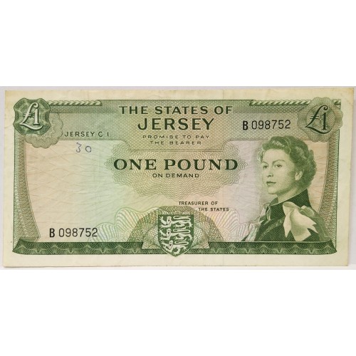 Jersey 1963 One 1 Pound Banknote . Serial: B098752. Error. No Signature.