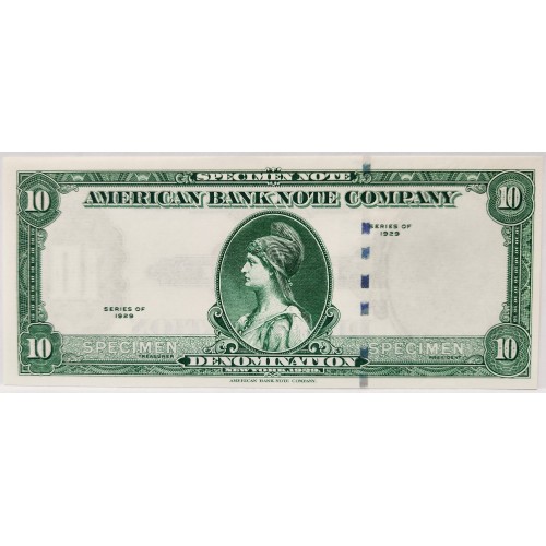 United States of America 1929 Ten 10 Dollars Banknote. Specimen. No Serials.