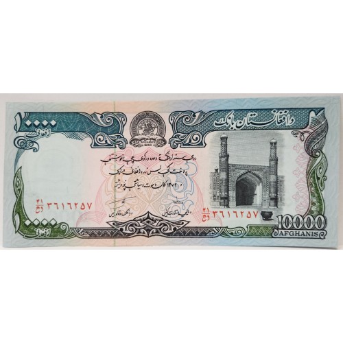 Afghanistan 1993 Ten Thousand 10,000 Afghanis Banknote. Error. One Note