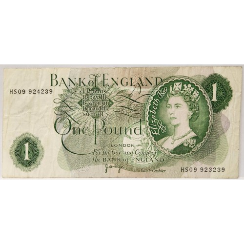 Great Britain UK 1970 One 1 Pound Banknote. Error. Mis-Matched Serials.