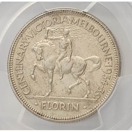 Australia 1934/5 Florin. PCGS AU58. Centenary. Very Scare. High Grade.