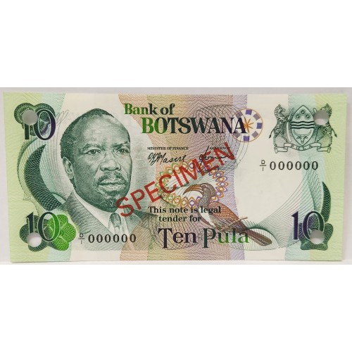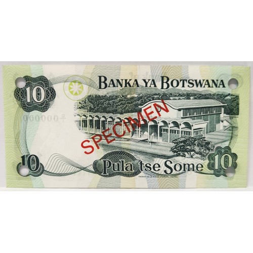 BOTSWANA 1976 . TEN 10 PULA BANKNOTE . SPECIMEN