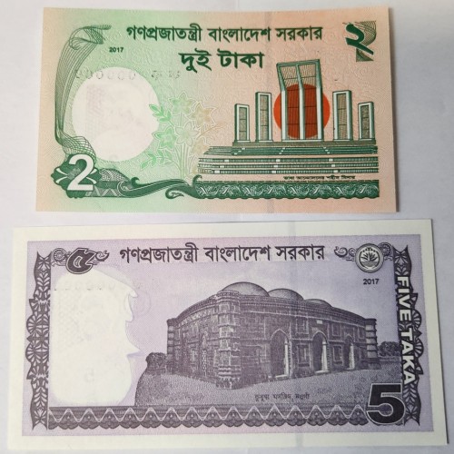 BANGLADESH 2017 . TWO 2 and FIVE 5 TAKA BANKNOTES . SPECIMEN