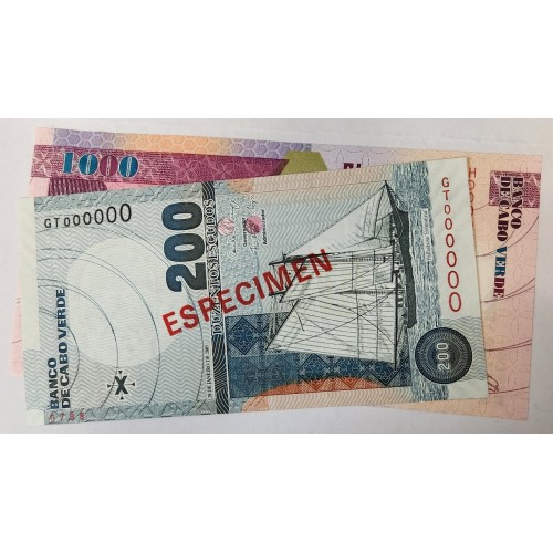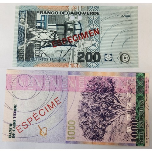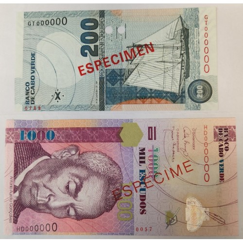 CABO VERDE 2005 - 2007 . TWO HUNDRED 200 and ONE THOUSAND 1,000 ESCUDOS BANKNOTES . SPECIMEN