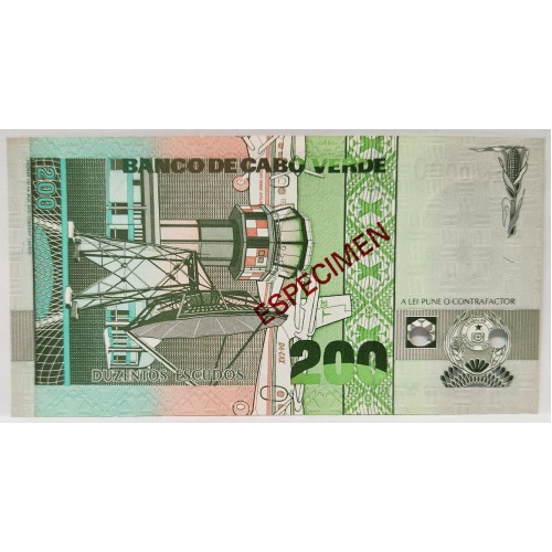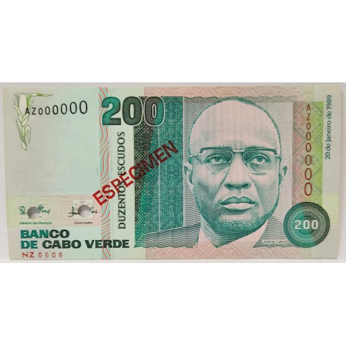 CABO VERDE 1989 . TWO HUNDRED 200 ESCUDOS BANKNOTE . SPECIMEN